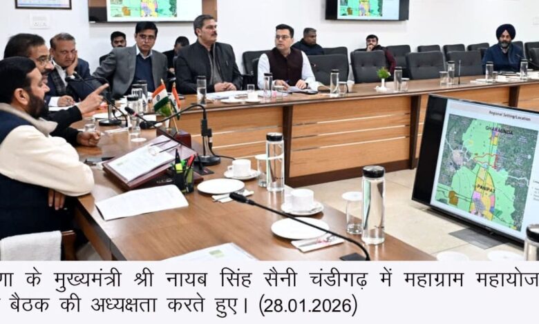 मुख्यमंत्री बुधवार को हरियाणा निवास में आयोजित महाग्राम महायोजना की समीक्षा बैठक की अध्यक्षता कर रहे थे। बैठक के दौरान पांच महाग्रामों — कोहंड (जिला करनाल), सौंध (जिला पलवल), दीघोट (जिला पलवल), औरंगाबाद (जिला पलवल) तथा खानपुर कलां (जिला सोनीपत) के लिए तैयार किए गए ग्राम विकास प्लानों का विस्तृत प्रस्तुतीकरण दिया गया। श्री सैनी ने अधिकारियों को निर्देश दिए कि ग्राम विकास प्लान के अंतर्गत प्रस्तावित सभी भूमि उपयोगों के लिए सेक्टर-वार विस्तृत योजना तैयार की जाए। उन्होंने यह भी स्पष्ट किया कि प्लानिंग प्रक्रिया के दौरान गांवों की सांस्कृतिक विरासत, पारंपरिक स्वरूप और स्थानीय पहचान को संरक्षित रखते हुए उन्हें प्रोत्साहित किया जाए।
