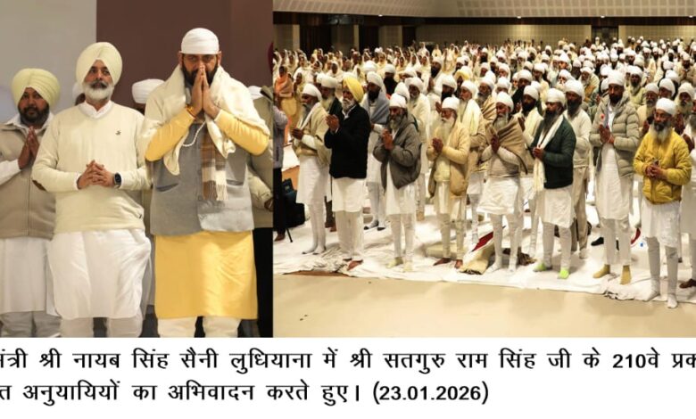 मिलन सिंह : हरियाणा के मुख्यमंत्री नायब सिंह सैनी ने महान संत, समाज सुधारक और राष्ट्र चेतना के अग्रदूत सतगुरु राम सिंह जी महाराज की जयंती के अवसर पर पंजाब के जिला लुधियाना स्थित भैणी साहिब, समराला में आयोजित भव्य कार्यक्रम में शिरकत की। मुख्यमंत्री ने सतगुरु राम सिंह जी महाराज को श्रद्धापूर्वक नमन करते हुए उनके विचारों को सामाजिक और राष्ट्रीय उत्थान का मार्गदर्शक बताया। उन्होंने कहा कि बाबा जी का जीवन मानवता, नैतिकता और राष्ट्रहित पर आधारित सच्चे विकास की प्रेरणा देता है। इस अवसर पर मुख्यमंत्री ने आयोजक समिति की मांग पर कहा कि आयोजक समिति के सदस्यों से विचार-विमर्श के उपरांत सतगुरु राम सिंह जी महाराज के नाम पर हरियाणा सरकार चेयर स्थापित करने का कार्य करेगी।
